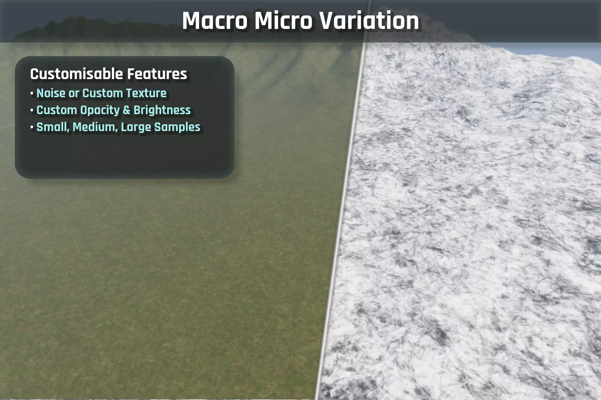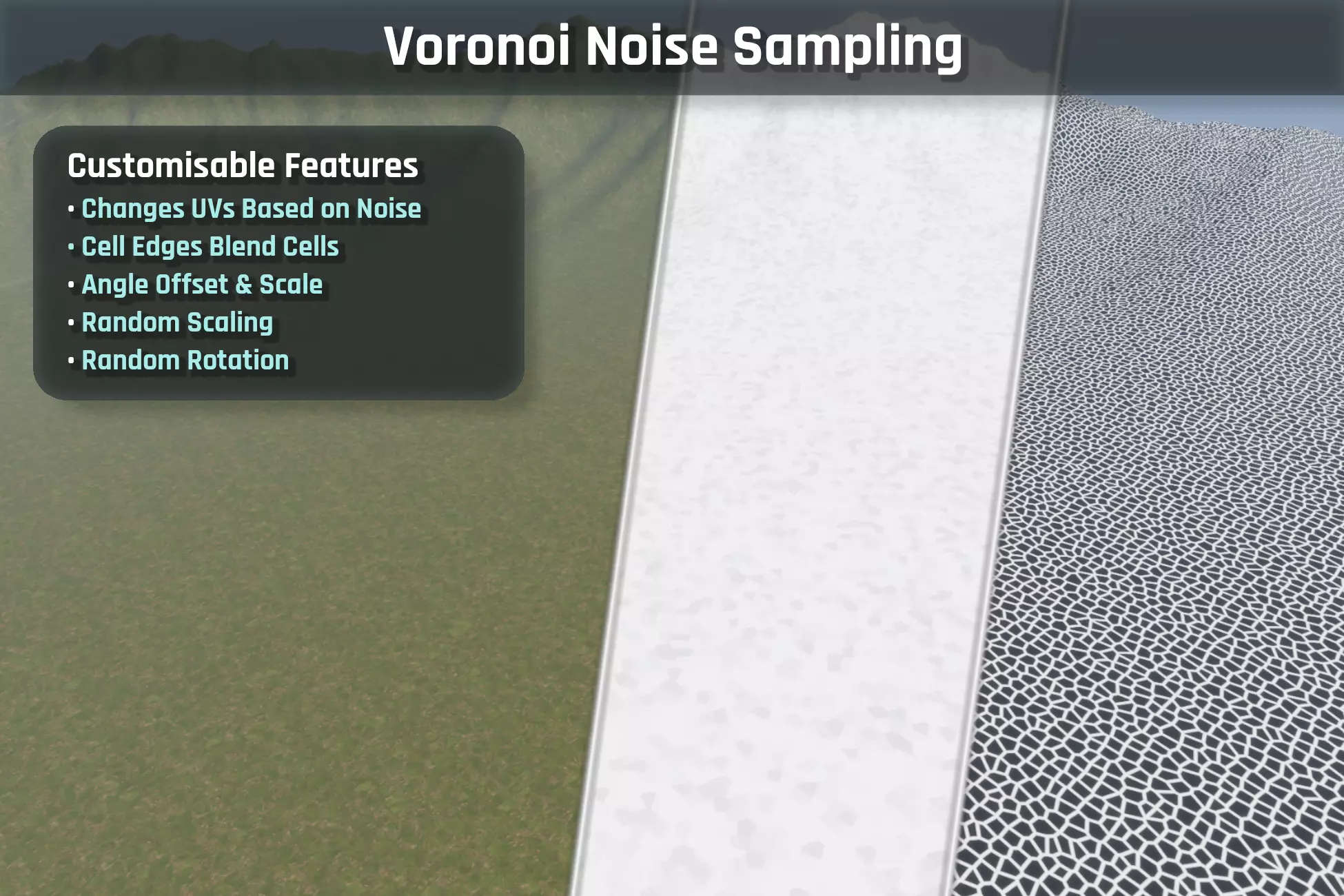 Developer William Schack released Repetitionless, their paid Unity shader tool that combines multiple techniques to reduce visible texture tiling across materials and terrains.