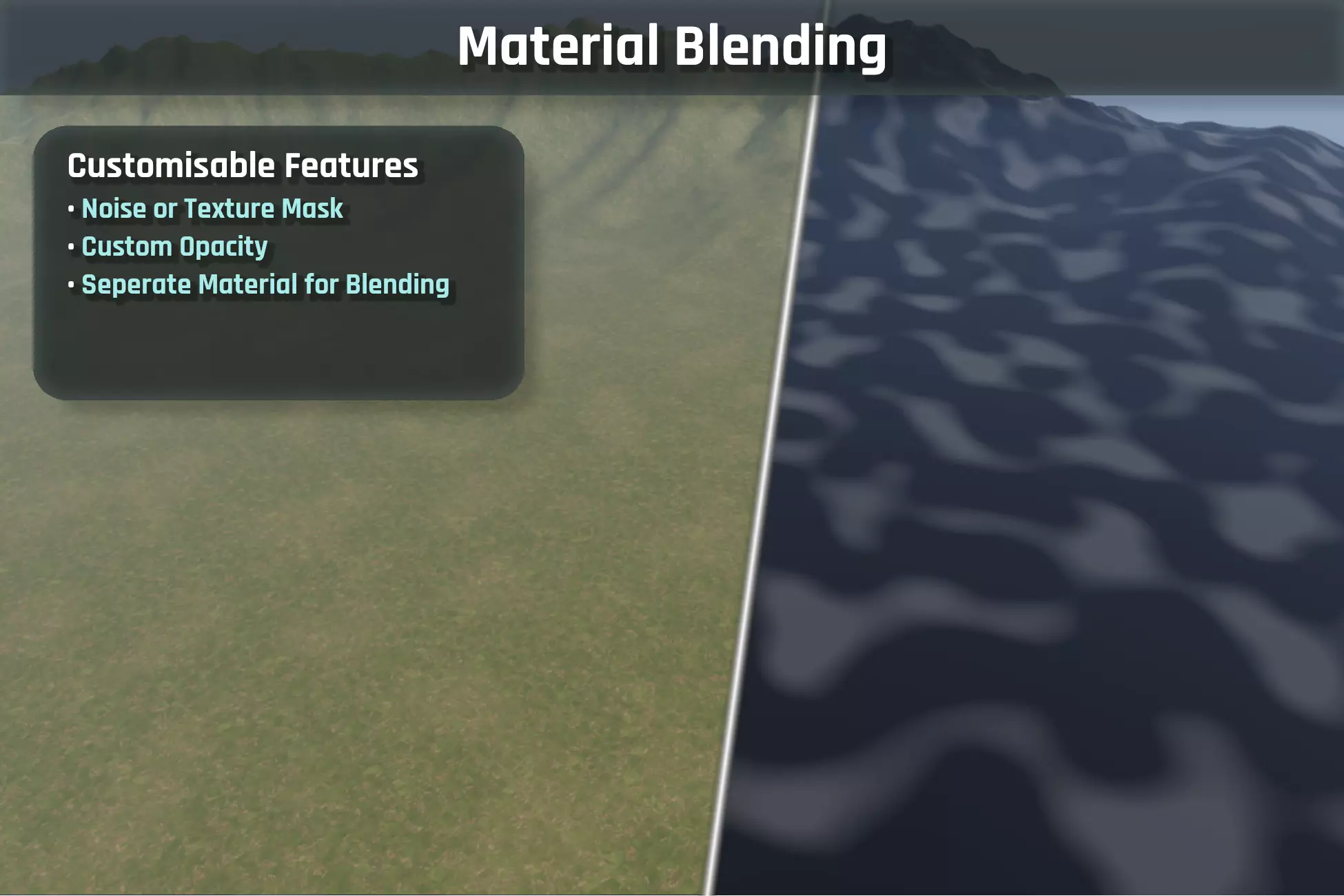The system includes material blending, allowing additional layers to be overlaid using noise or custom masks. This makes it easier to mix different surface types without repeating patterns becoming obvious.