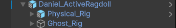 The Physical Rig is the actual ragdoll that interacts with the world. It uses Unity’s Configurable Joints, which act like muscles. These joints rely on PID controllers to continuously drive the physical bones toward the pose defined by the Ghost Rig. This separation allows the character to stay physically simulated.