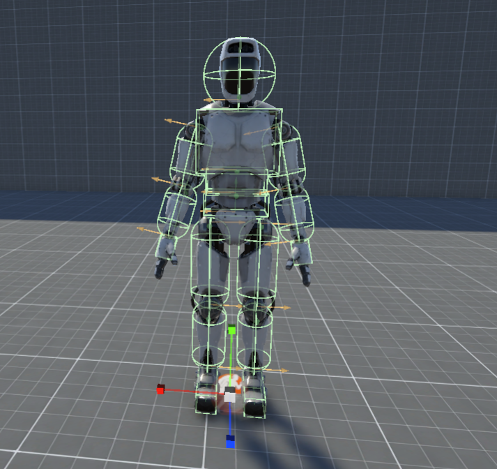 Once a foot makes contact, a foot gluing state machine anchors it to that world position. The foot remains fixed until the gait cycle lifts it again, preventing sliding and ensuring that each step contributes to the character’s physical stability.