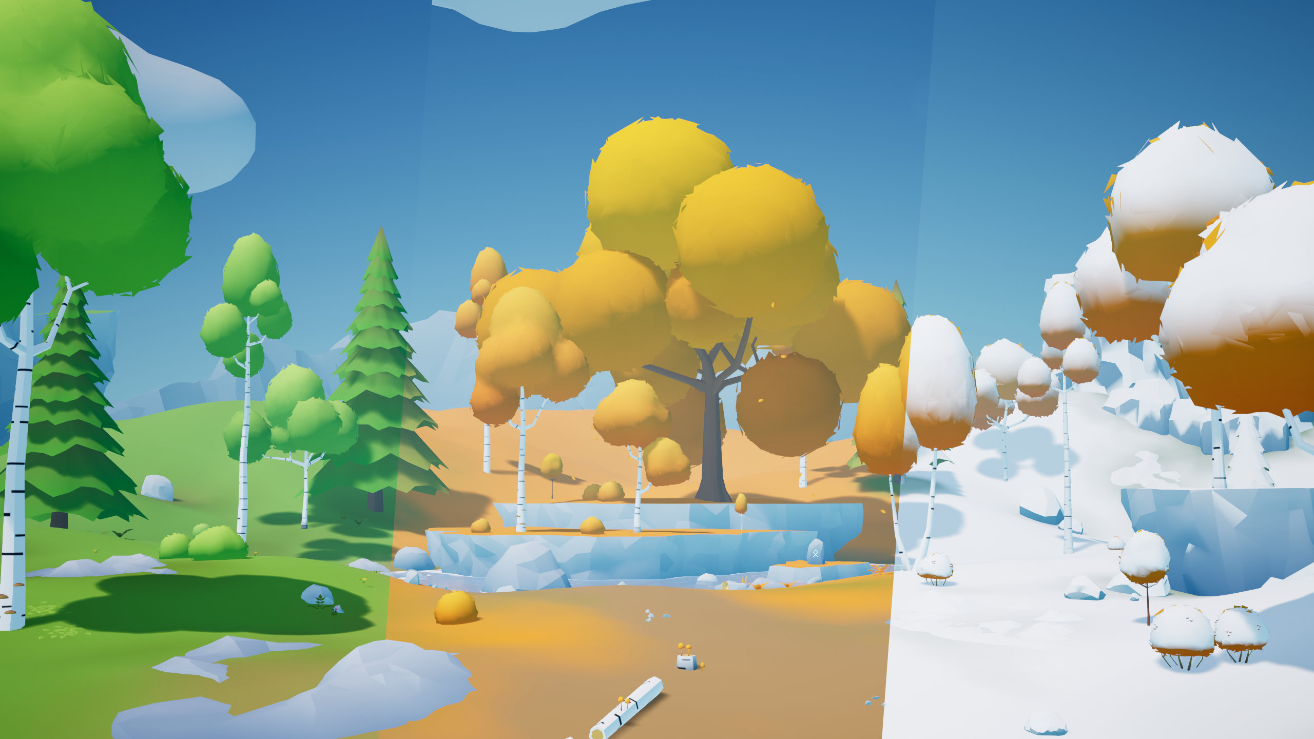Instead of providing separate mesh versions for each season, the pack uses season-based materials. Three seasonal presets are included: