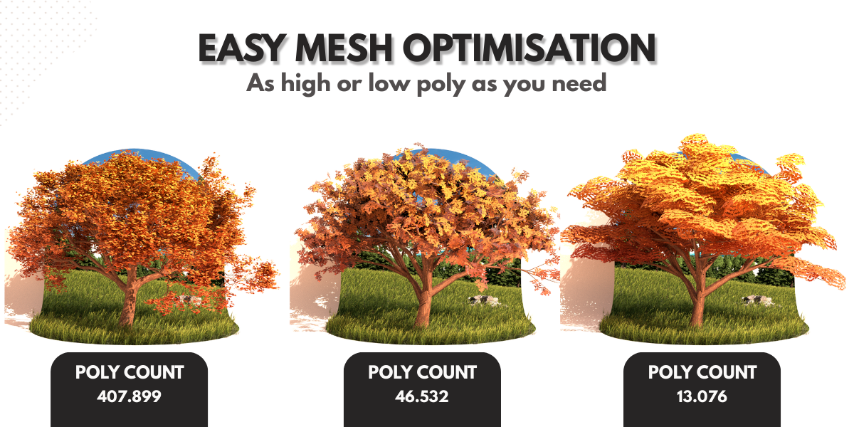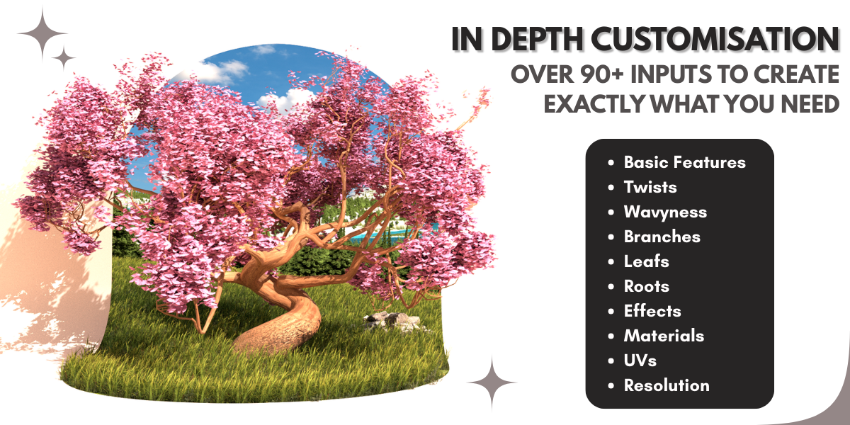 Differences: Easy Tree is simpler and more lightweight than Treedesigner, it’s focused on quick one-click tree creation rather than a huge library of prebuilt species. It offers basic procedural controls, whereas Treedesigner bundles many models plus sliders for more artistic variety.