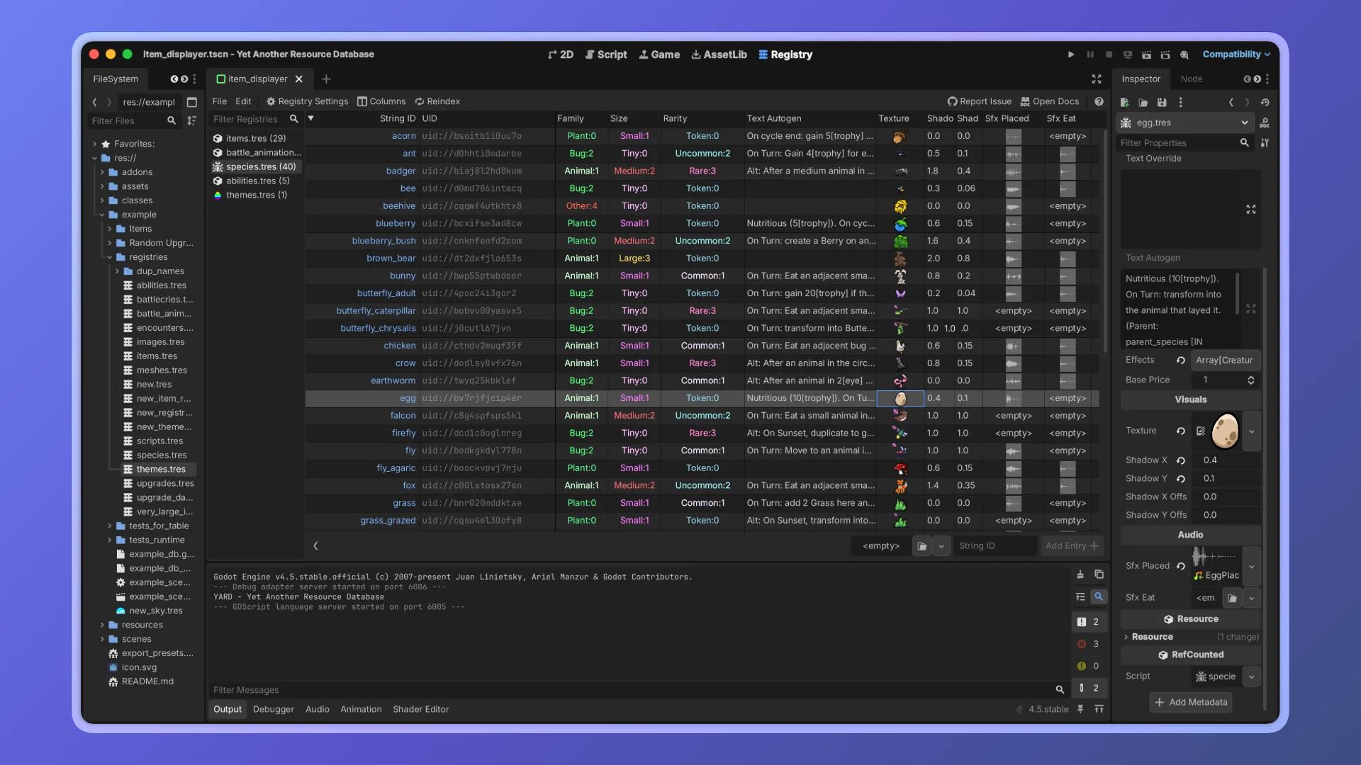 YARD (Yet Another Resource Database) is a Godot 4 plugin that combines: